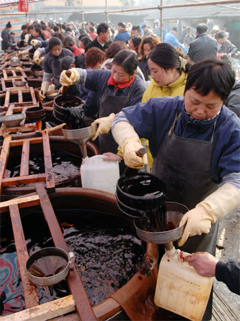 2009年1月17日上午,江苏镇江一老字号企业被排队打酱油的市民所包围,形成了一个奇特的景观。每年过年,老百姓都有来此打酱油的习惯。