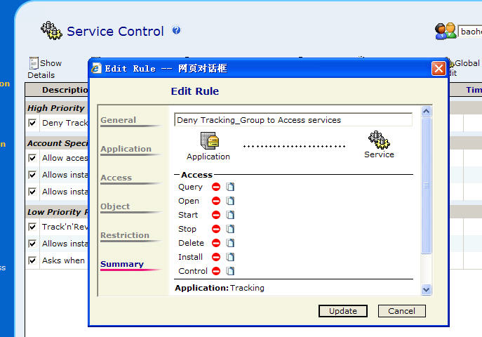 2/禁止Tracking组的的服务查询/控制动作。