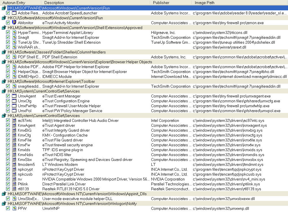 5/在系统驱动目录下创建病毒文件夹,用来存放下载的病毒文件。接着来损招了:按照HKLM\SOFTWARE\Microsoft\Windows\CurrentVersion\Run项下应用程序启动加载的先后顺序,依次将相应的应用程序替换为病毒主程序(文件名仍为原文件名)。此后,在HKCU\SOFTWARE\下添加了一个注册表健(不知其具体意义,见图)。