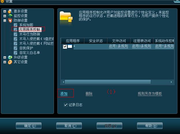 防御-智能主动防御-应用程序控制(64位下瑞星不含主动防御)
