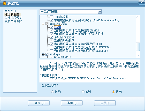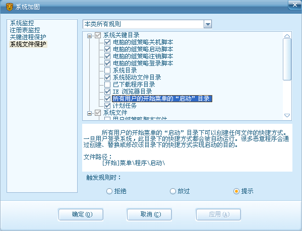 注意:监控键、包含子键要勾上2.增加启动文件夹保护方法: