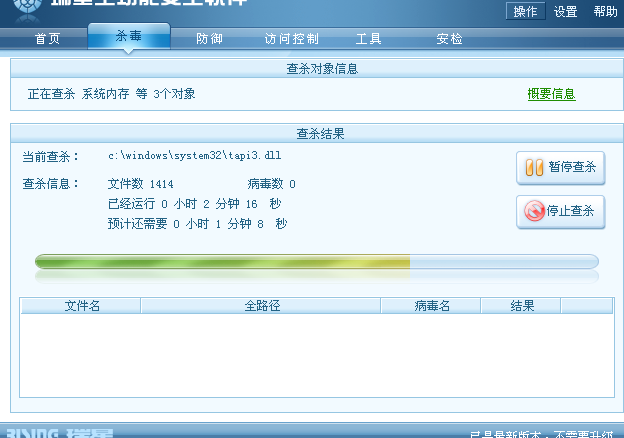今天突然发现 在空闲时段查杀时已运行时间和预计还需时间完全一样,都在一秒一秒的增加。