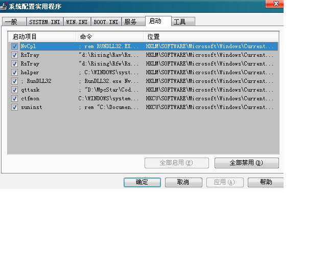 你点开始--运行---msconfig。切换到启动选项卡,截图上传~~~