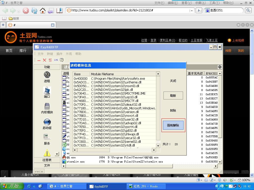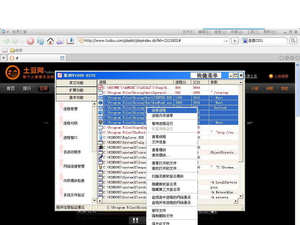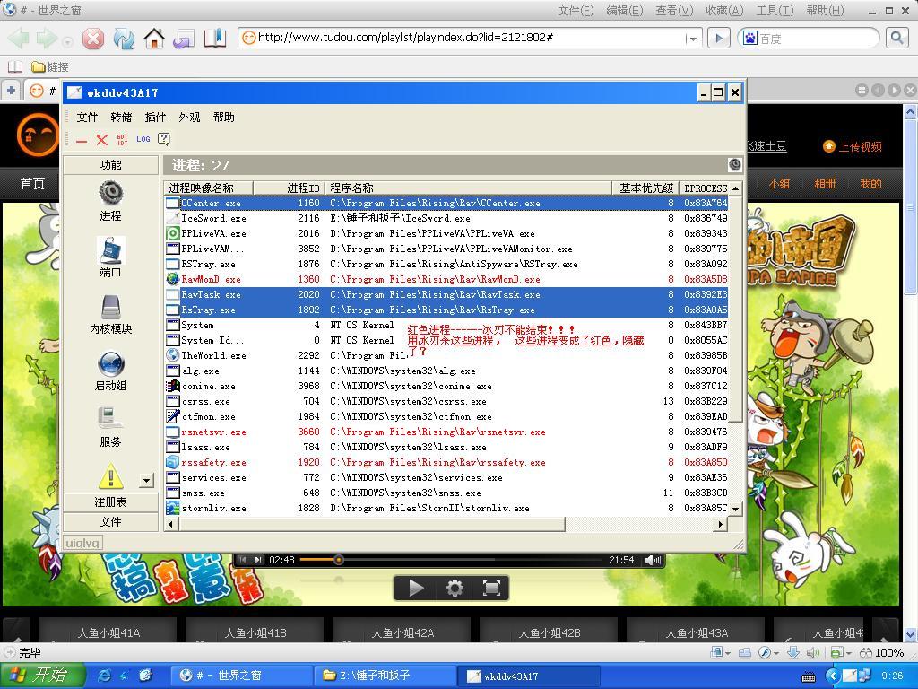 只是,用冰刃结束瑞星的进程时,有一些进程会