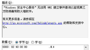 “Windows 安全中心服务”无法用 WMI 建立事件查询以监视第三方防病毒和防火墙软件。