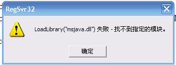 regsvr32 msjava.dll,确定,接着出现一个消息框,确定