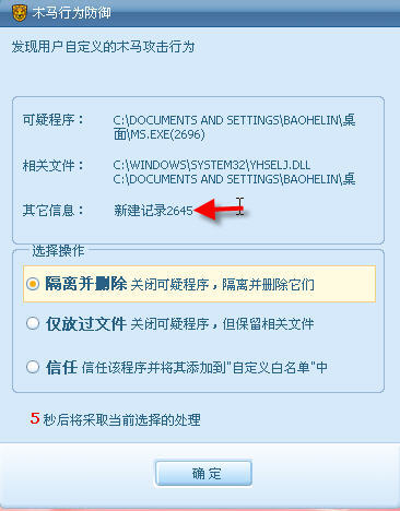 这个帖子提到的那个木马ms.exe的自定义行为防御规则很简单:
