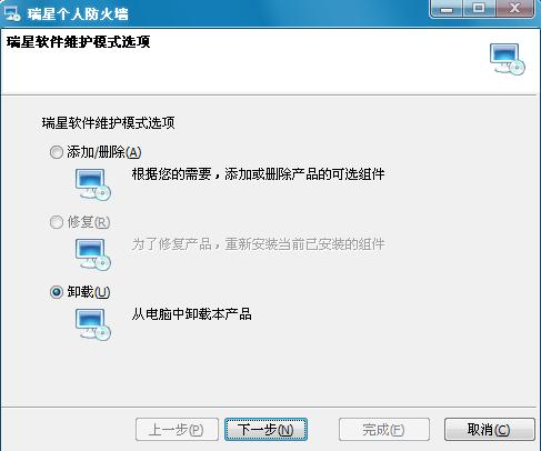 本人用的是绝对正版的瑞星软件,出现不能手动升级的问题。——当前的版本是21.24.10,已知瑞星网站最新版本是21.24.20,点击“智能升级”后,出现“瑞星软件维护模式选项”窗口,窗口中的三个选项(1.“添加/删除”、2.“修复”、3.“卸载”)第二项“修复”为灰色不可选,默认已选中第三项“卸载”。