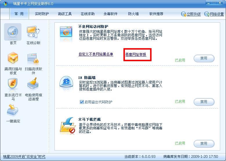 2、接着点击“不良网站访问防护”栏下的“举报恶意网站”: