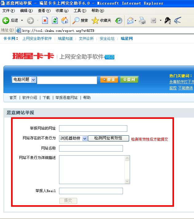 请使用卡卡上网安全助手,按照如下方式举报你认为不良的网站: