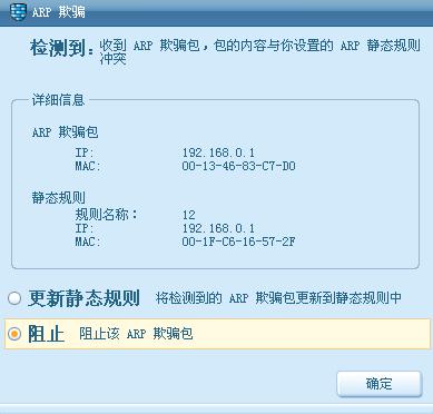 防火墙发现ARP欺骗后,我用你教我的arp -a找到了一些信息,和防火墙显示的不同,请看下图。防火墙说的是发现IP:192.168.0.1.mac:0-13-46-83-c7-d0.