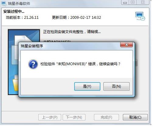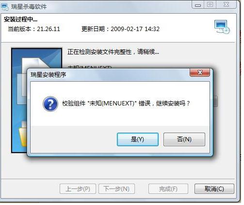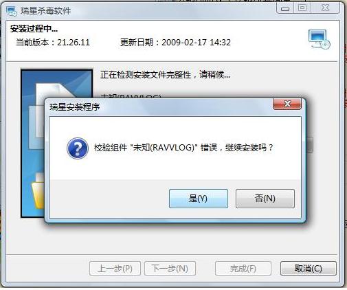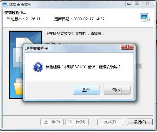 可是今天升级时又蓝屏了,我好郁闷。于是在安全模式下升级瑞星,蓝屏倒是没有,弹出一大堆的所谓未知错误,问我是否继续安装,我点“是”,升级似乎是成功了,我回到正常模式,感觉好像不对,于是我修复瑞星,结果又弹出“未知错误”,我连点12个“是”之后蓝屏,12个未知错误截图附后。