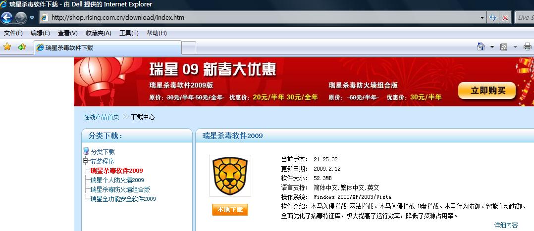 我自从1/23拿到DELL的本本,装上瑞星之后,升级瑞星都蓝屏,没办法就卸载瑞星,可是连卸载时也蓝屏。为此,拿到本本不到一个月,我因为瑞星重装了二次系统,忘记说一声,我用vista系统。瑞星啊,想说爱你真不容易!