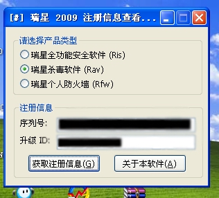 只剩下个正版瑞星软件。但又不知道序列号信息。