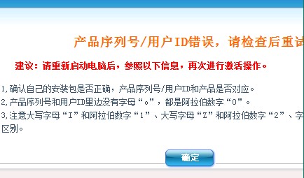检查用户ID和产品序列号是否输入正确