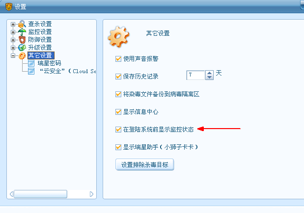 楼主可以在详细设置,其他设置里取消勾选 显示瑞星助手 小狮子就可以不出来了