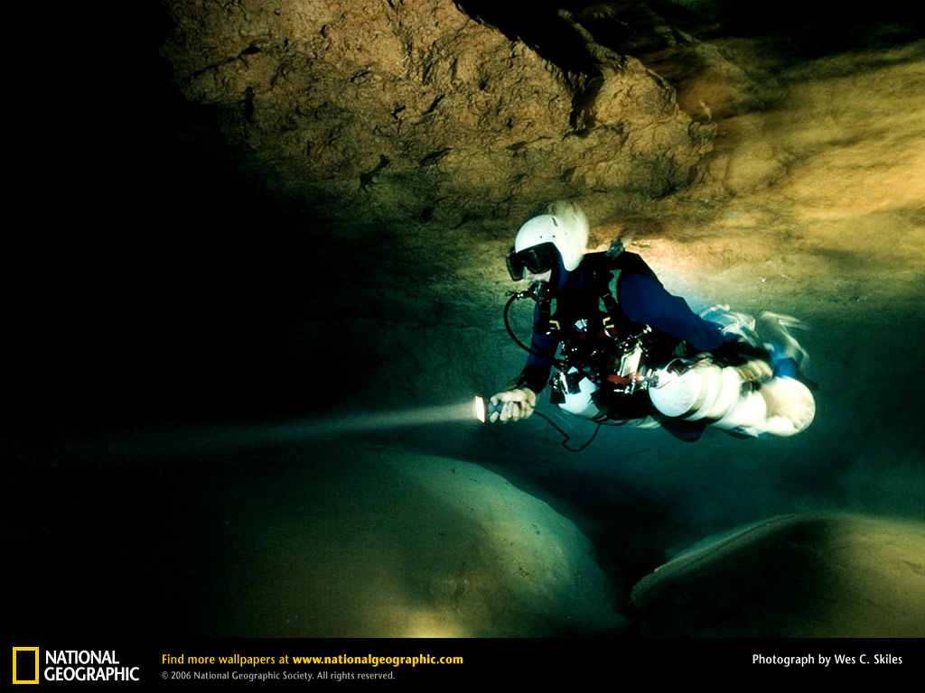 一名潜水员正在穿越佛罗里达州一处迷宫般的地下泉。进入这个地下水脉的神秘探险者总是络绎不绝,既有最初发现佛罗里达州的西班牙航海家庞塞·德莱昂,也有身着橡胶潜水服的现代水文爱好者。