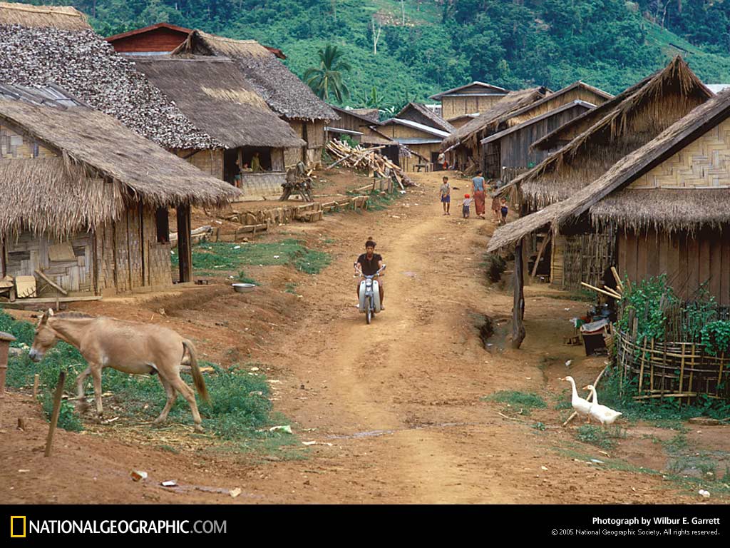 湄公河谷的一个农村里,一个青年骑着电动车穿过那些在快速路上漫步的鹅群和驴群。