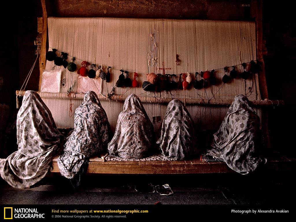 伊朗姐妹们共同编织着一块地毯。伊朗的很多乡村学校教育只到五年级,之后,女孩们常常会开始从事编织工作,而他们的兄弟们到其他地方继续接受教育。一块地毯成品能赚300~1000美元,这在一个平均月收入为150美元,结婚嫁妆可能高达2000美元的地方是相当可观的一笔钱了。