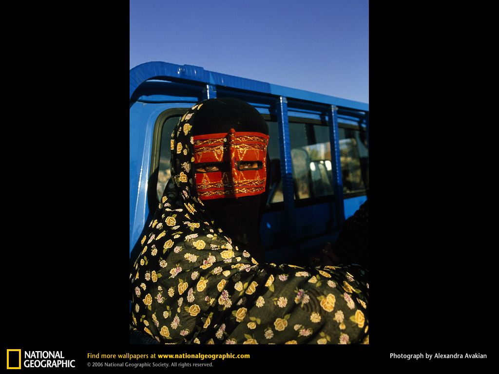 一个靠戴传统红色面具而在公众视野中掩饰其外貌的俾路支女子。其实伊朗妇女大部分都是在穆斯林世界受的教育和得到成就。1979年革命之前,只有35%的妇女识字,而现在数字上升到74%。1999年,有三分之一的伊朗医生是女的。