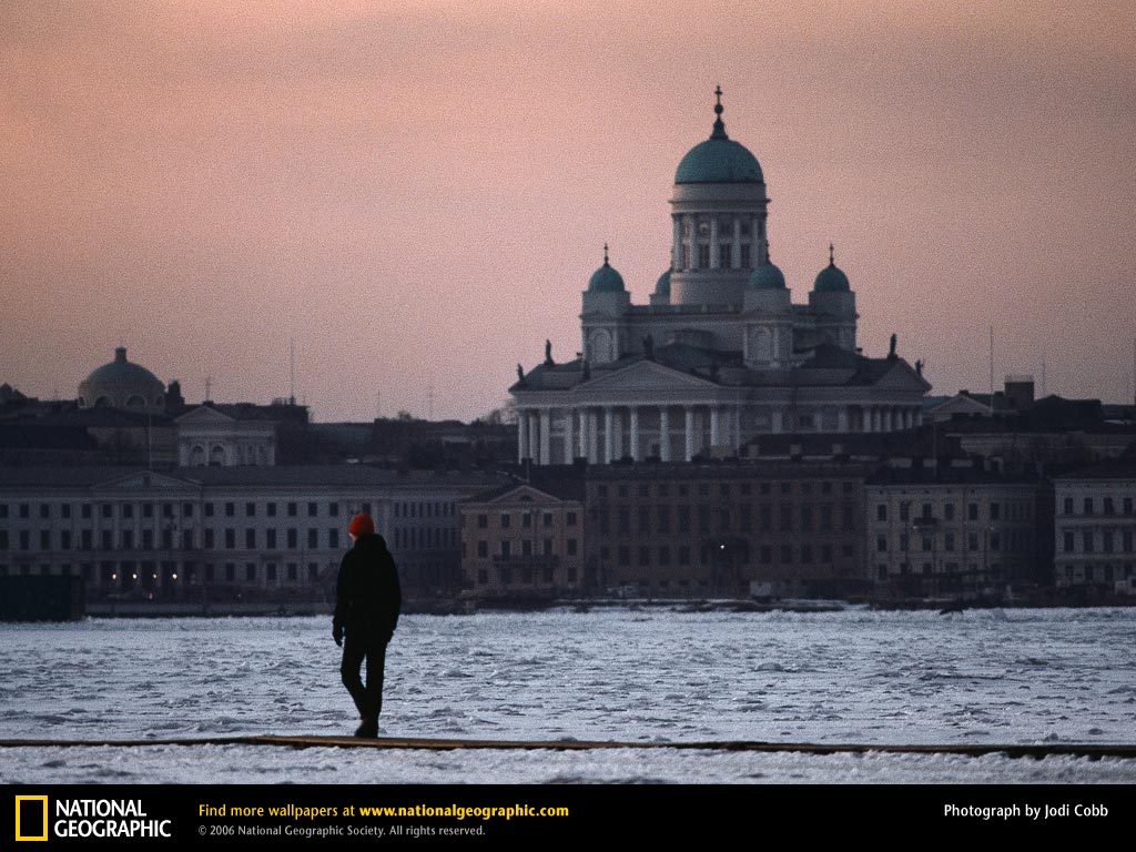 宏伟的路德派大教堂耸立在阴郁的赫尔辛基市,仿佛一个被捆绑的,傲视寒冷的男人穿过一个冰冻的港口。在这城市里,很多的港口都被冰冻了。这座白色的大教堂建于1852年,(用芬兰语叫做Tuomiokorkko),坐落在市中心的参议院广场内。