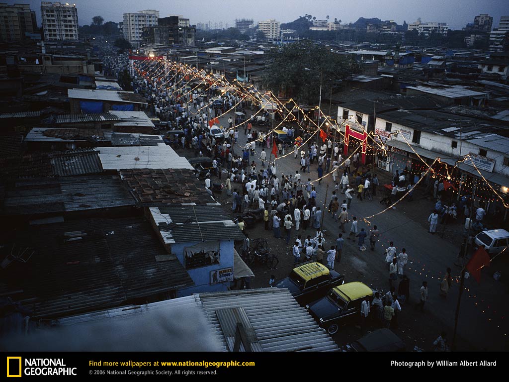 节日的灯光给一个印度城市的贫民窟带来了一丝热闹。