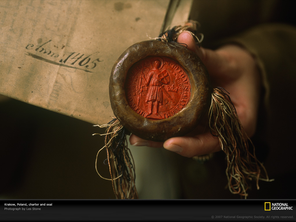 克拉科夫是斯拉夫欧洲地区繁华的贸易中心,自1038年起就作为波兰的首都。在15世纪时,图中这个历史悠久的宪章被加印生效,自此克拉科夫进入了其黄金时代。在国王卡西米尔四世统治的45年里,波兰成为了欧洲最强大和繁荣的文化中心之一。诸多学者(如哥白尼),建筑师和艺术家们都为创立克拉科夫恢宏的文艺复兴贡献了力量。
