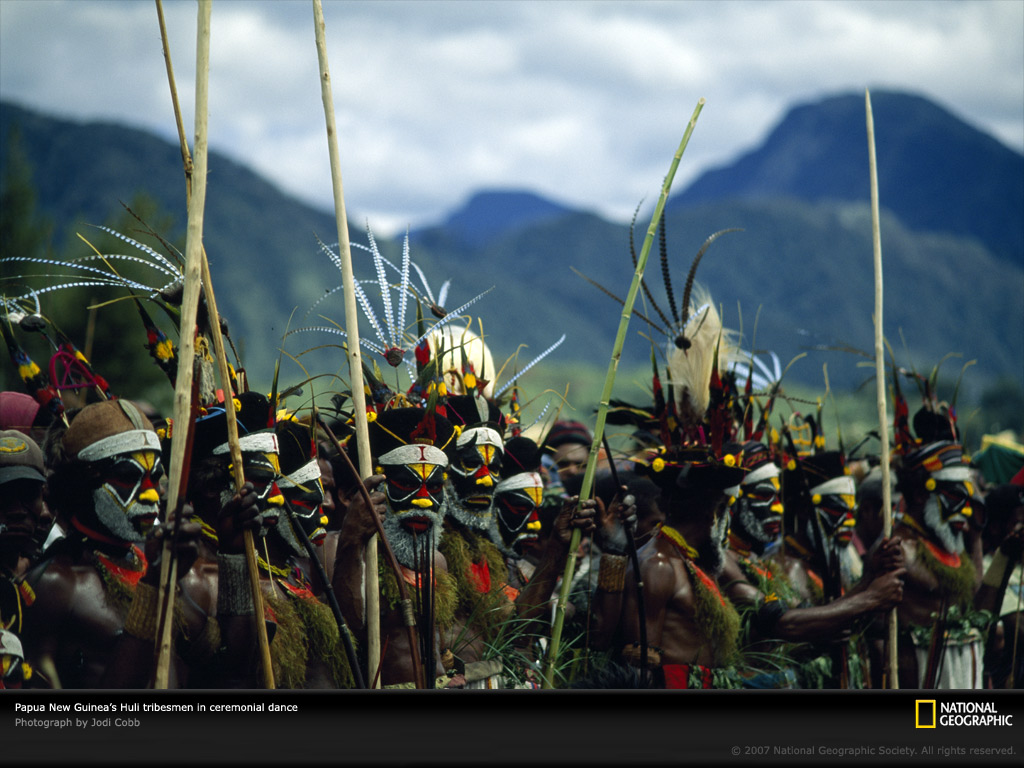 新几内亚高地的湖里部落人精心打扮,浓妆艳面,个个佩戴着假发正为他们引以为傲,一年一度的歌舞盛会做准备。人们梳妆打扮,昂首阔步,抖动着羽毛装束,模仿那里的天堂鸟的动作。