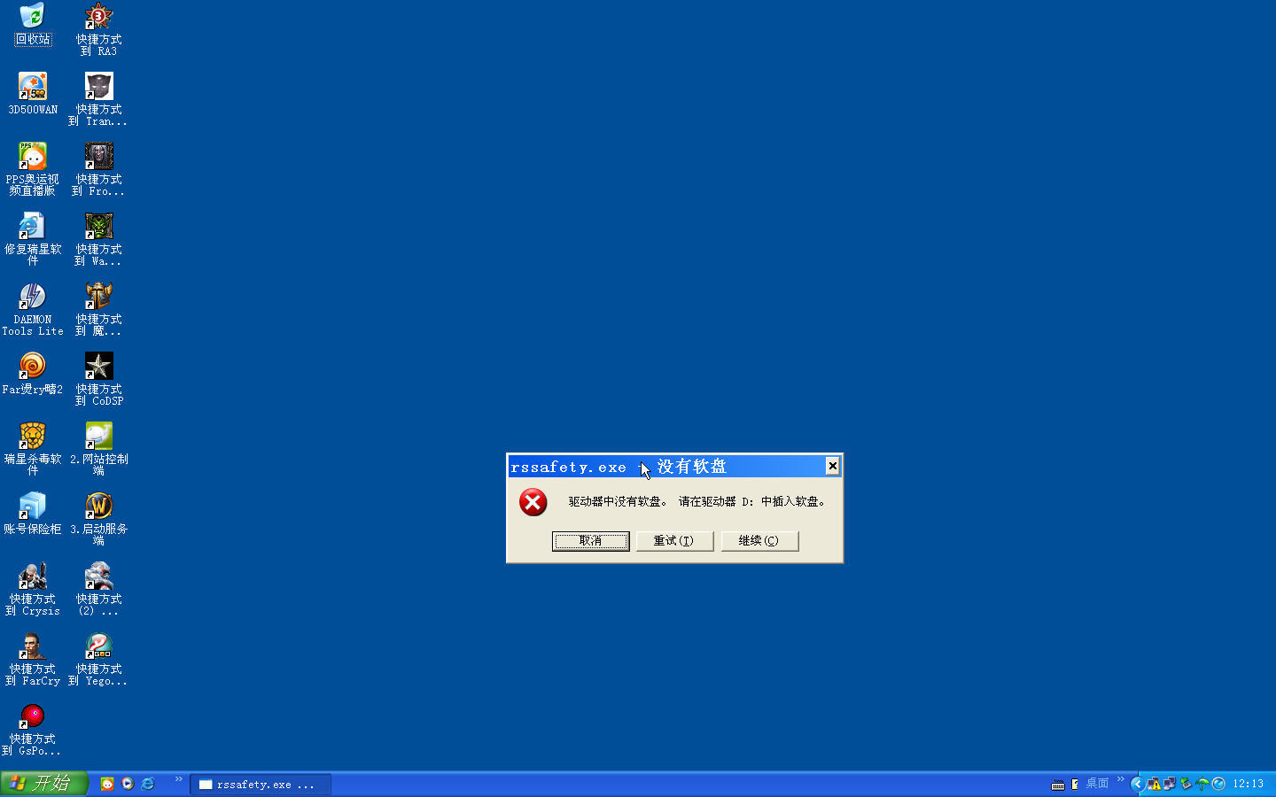 开机时跳出或开帐户保险箱跳出提示“--驱动器中没有软盘,请在驱动器D:中插入软盘--”是什么问题啊??? 谢谢