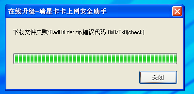 今天下午2009年3月27日下午16:10对瑞星卡卡进行更新时,出现如图提示,请指教是什么问题,全盘查杀,没有发现病毒,补丁完整。