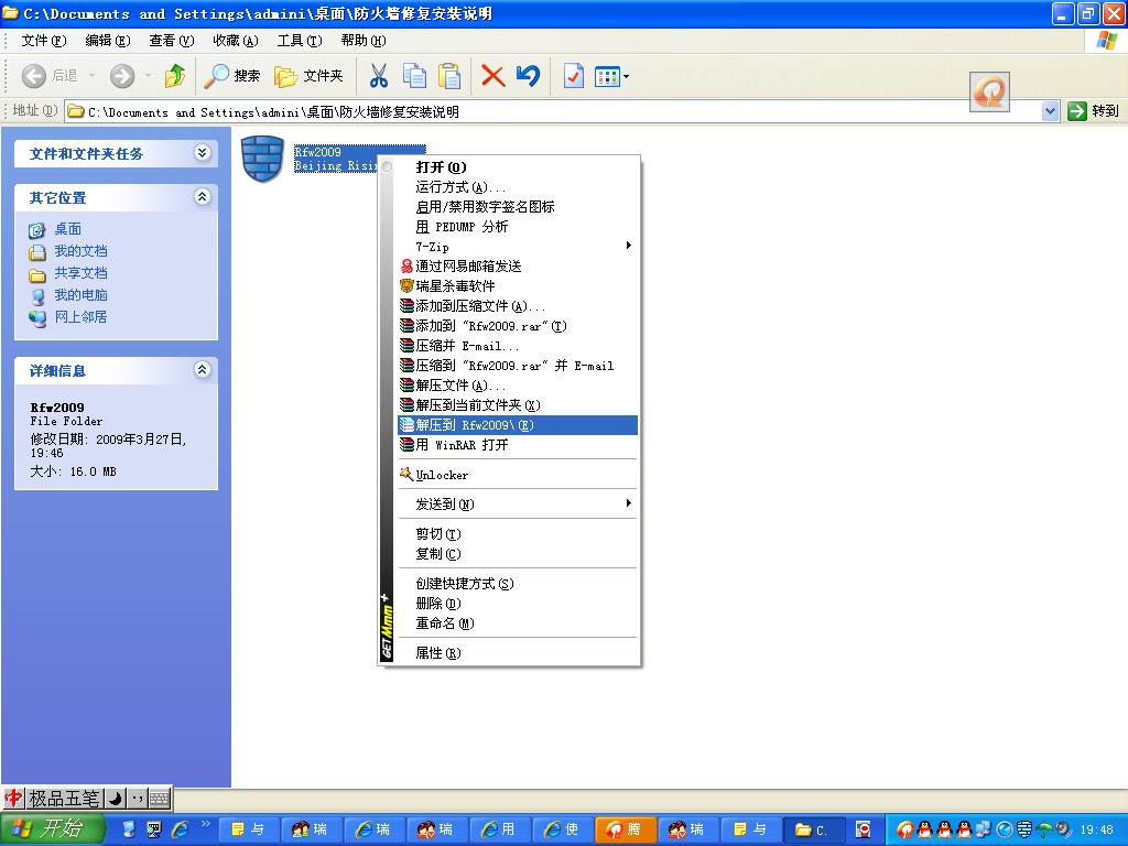 5、各种瑞星防火墙问题需要重装的时候,方便的话(也就是下载速度快的话),都可以使用以下的方法。