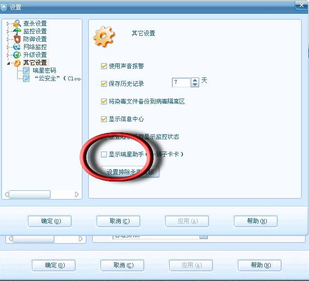 “瑞星全功能安全软件2009”中那个助手怎么关闭?