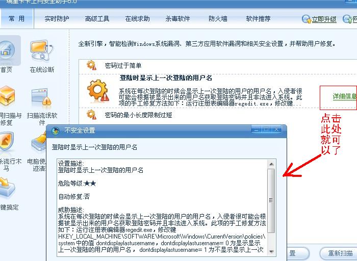 点了修复漏洞显示下载结束,可是在安检安全等级却还是会,怎么会这样???哪一位高手教教我,谢谢!