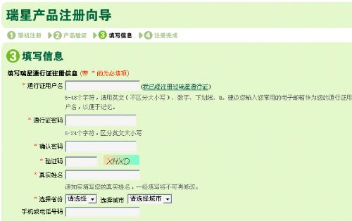 1、已有瑞星通行证。此时可以不必另行注册,直接选择【已有瑞星通行证】,填写曾经注册过的通行证和密码即可完成注册。
