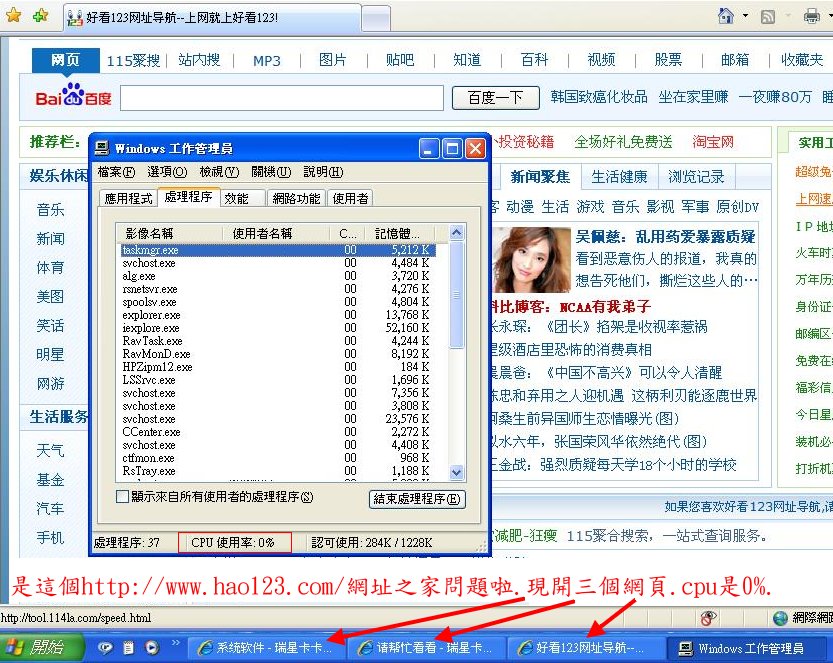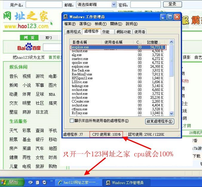 123网址之家 cpu 就会100% 其他网站是0-3%