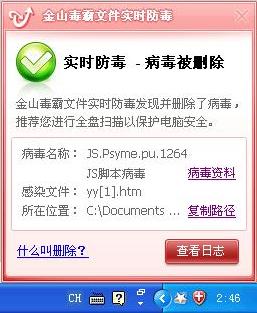 回复: 每次开机都提示杀毒,病毒名:js.psyme.pu.1264