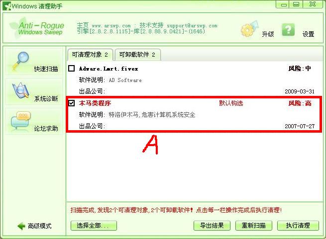 打钩的木马类程序,想清理也不行,一清理,电脑就蓝屏,无解