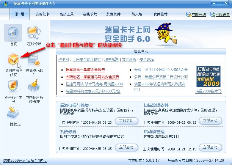 1、点击“漏洞扫描与修复”的功能模块