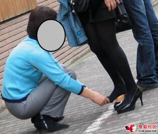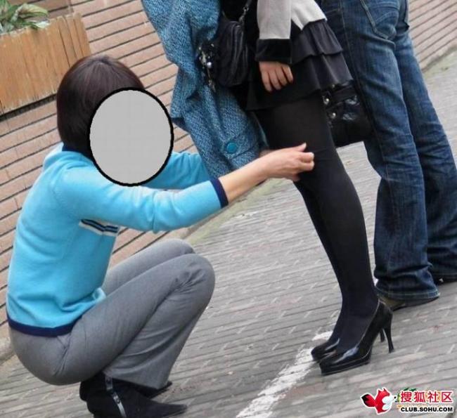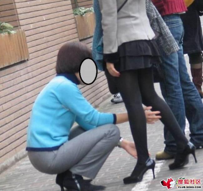 脑残女当街要亲生母亲帮自己整理丝wa(组图)