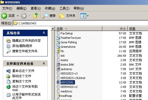 图中的KB932590安装后还会出现,那就去windows目录下找到KB932590.txt文件贴上来。