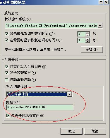 我的电脑 右键 属性 高级 启动和故障恢复【设置】 写入调试信息 核心内存转储
