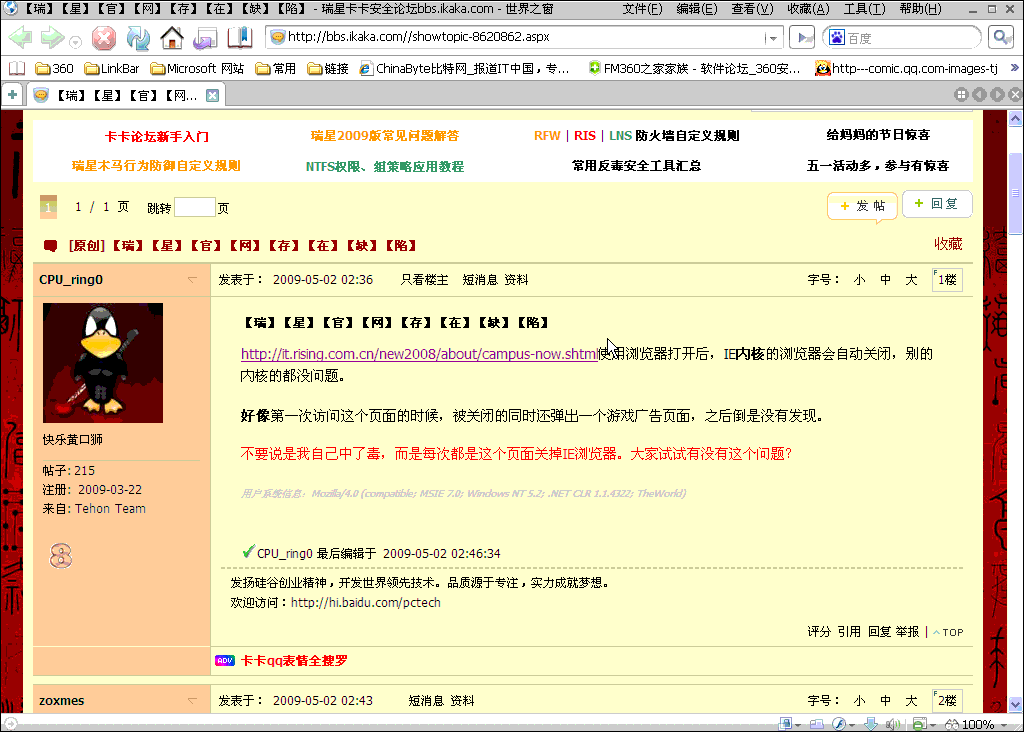 纯IE7的线路,不过跟瑞星的网站有很直接的关系。