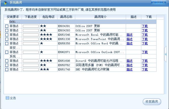 有几个补丁是关于office2007的补丁,lz系统是否安装有office2007?