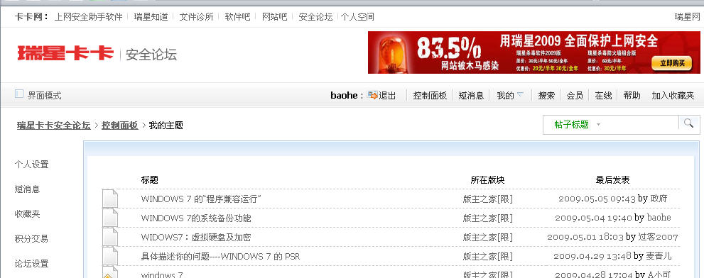 我玩儿 WIN7 的帖子都发在版主之家。你若进不去,可以找人帮着核实。