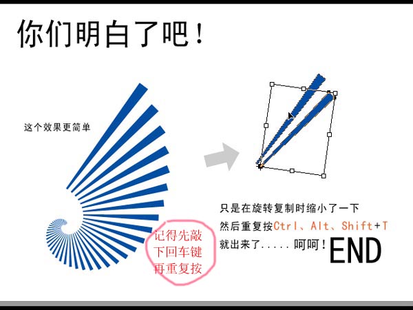 如何在PS里实现图形有规律变换的方法??如从大到小,旋转之类的等?