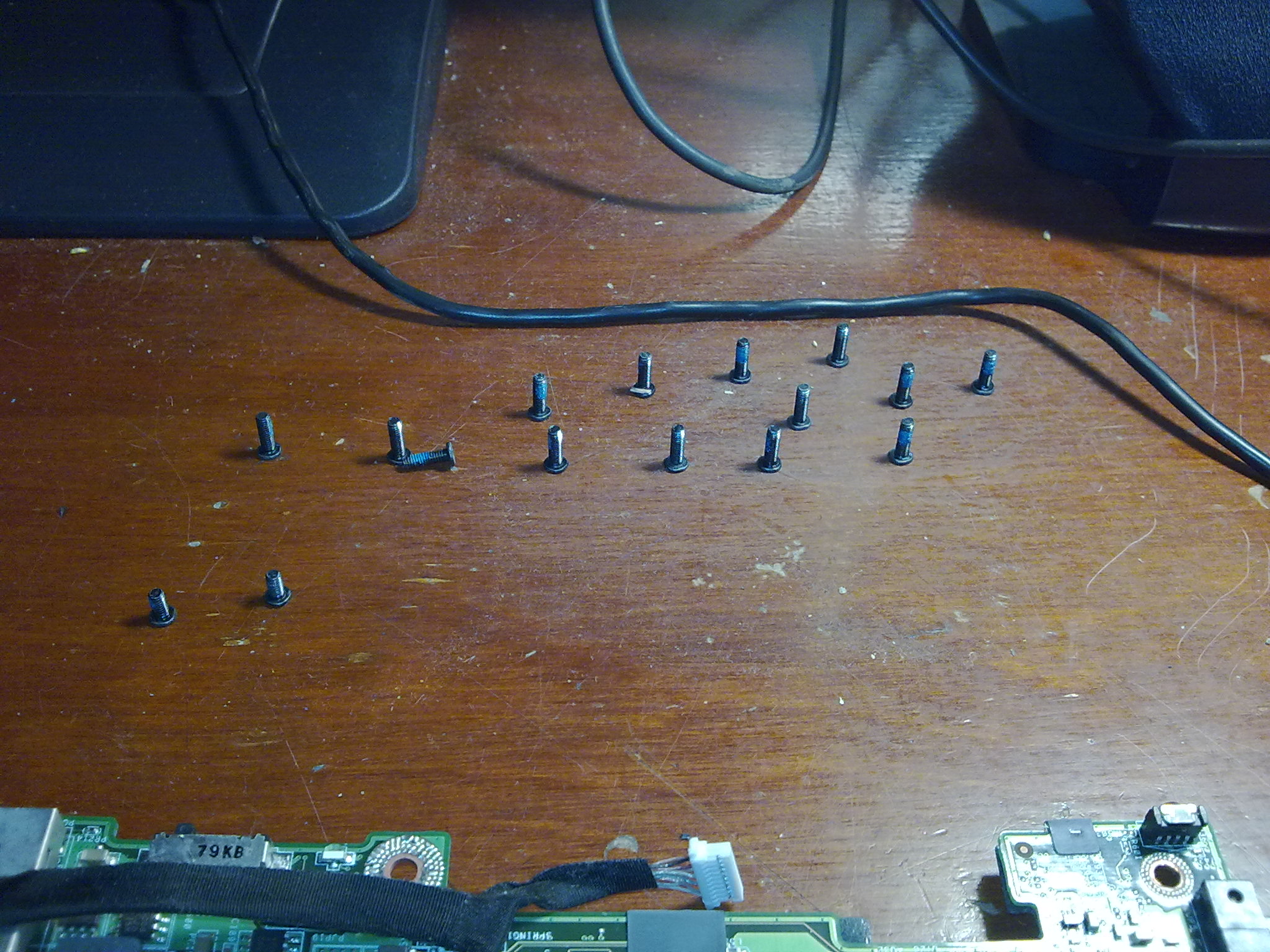 然后我们就拆下其它部件,光驱,内存条,硬盘等可拆部件,然后,我们拆下下面所有螺丝,那些槽最深的拆下,一共14颗