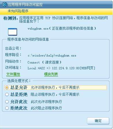 有个程序总是要访问,我不知道这个程序是什么,直接拒绝了~而且腾讯QQ我又没有点击它,QQ老是要自动上线,该不是成肉鸡了吧~如图: