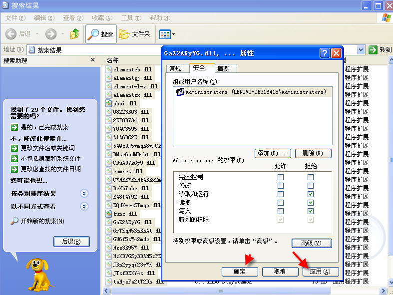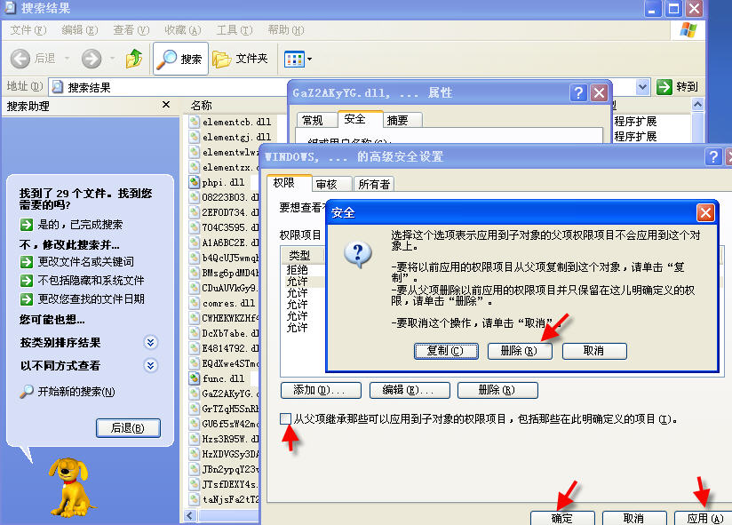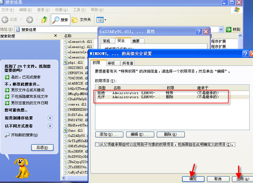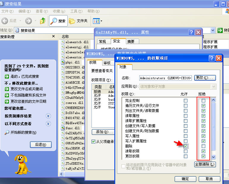 全部选中搜索到的病毒文件(这里以.dll病毒文件为例),参考图1-图7操作,将病毒.dll全部禁锢起来。