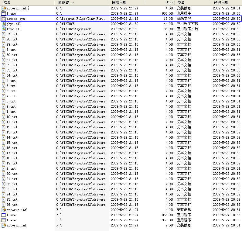 近期流行的这类木马群都比较变态。有驱动保护、病毒文件多,插入进程的病毒模块多,在各硬盘分区根目录以及移动存贮介质根目录下创建autorun.inf及配套的病毒.exe。