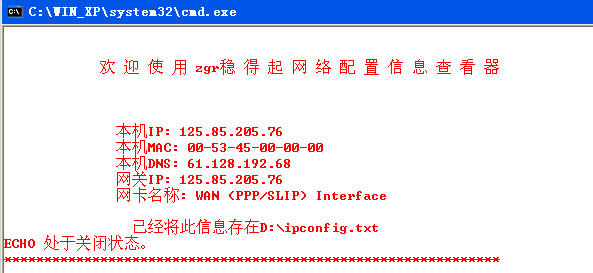echo 欢 迎 使 用 zgr稳 得 起 网 络 配 置 信 息 查 看 器